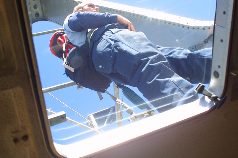 A look up towards the top, with the first guide tower visible.