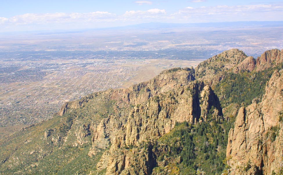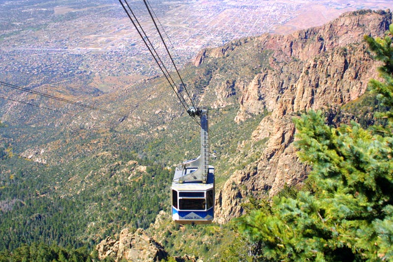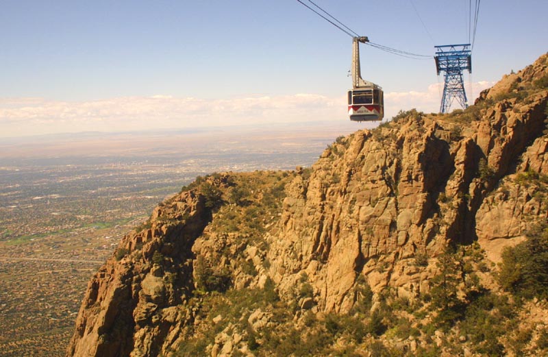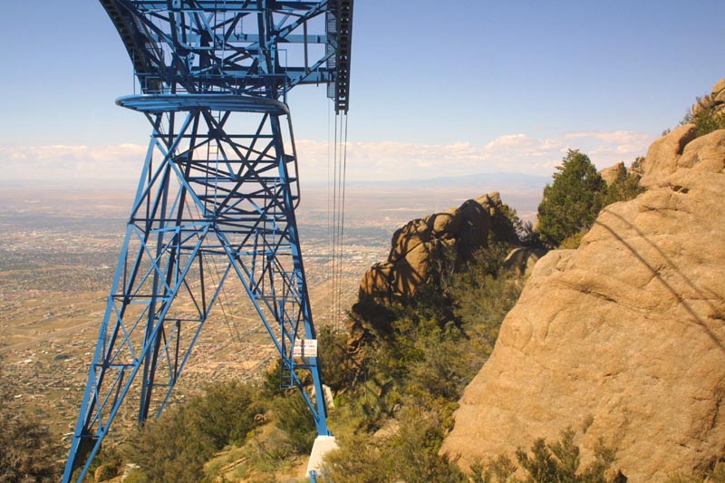 Sandia Peak sits just outside of Albuquerque, and rears up about two
