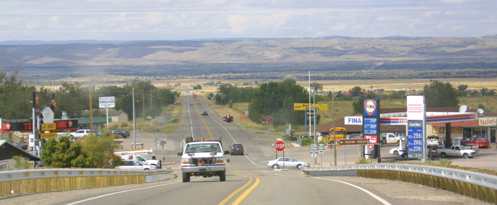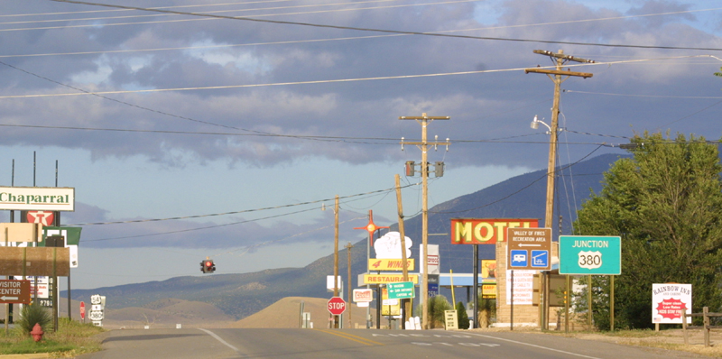 The crossroads at Carizozo. This is the modern part of town, with gas