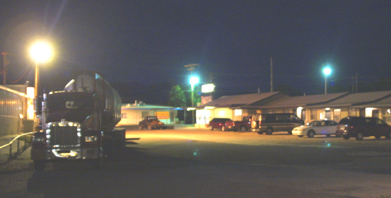 motel, the highway, and the little town are all asleep and quiet. Unfortunately,