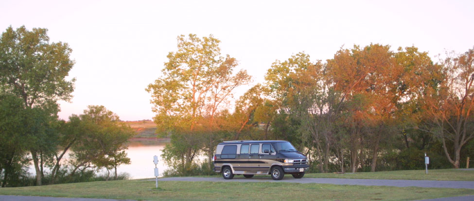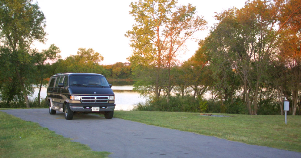 The shady rest stop, in Oklahoma. My van is visible in the photo below.
