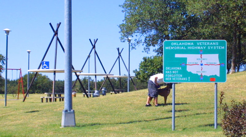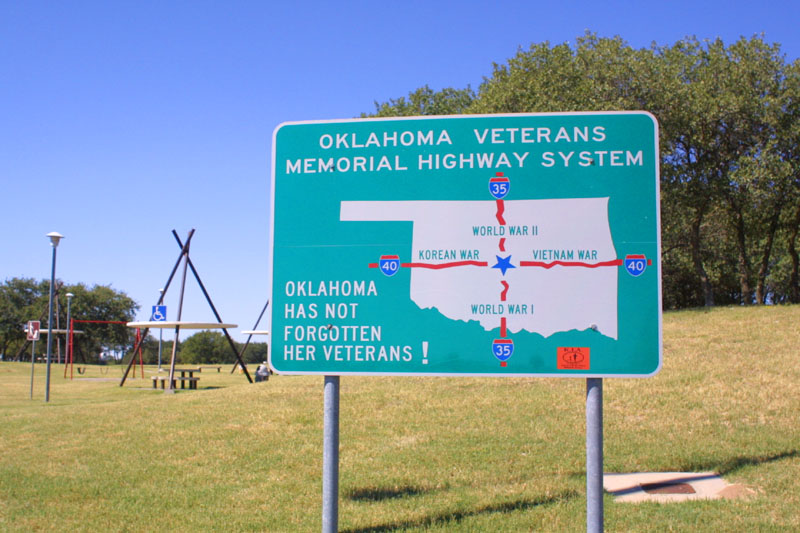 Nearly out of Oklahoma, and into Texas, It can be seen that this is the Korean War Memorial Highway.