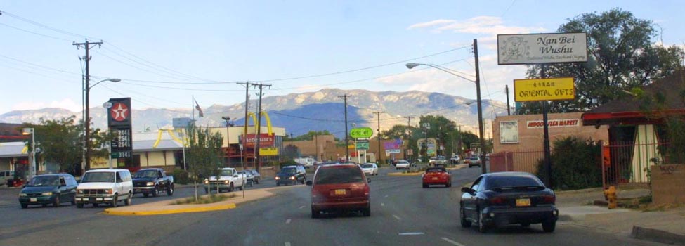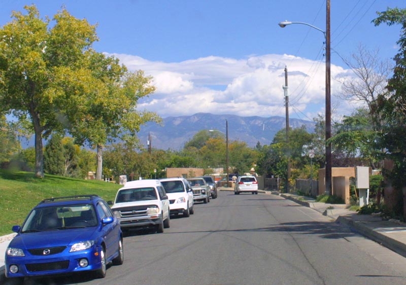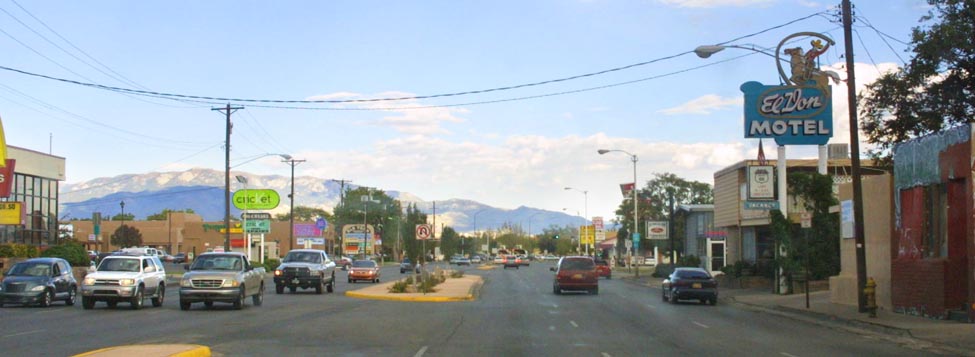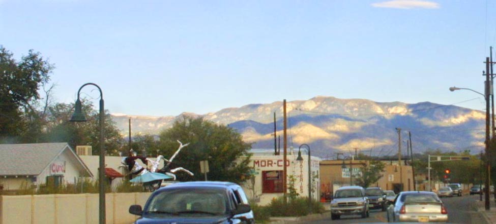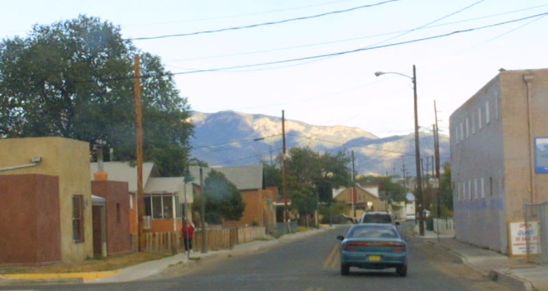 Heading towards Route 66, through Old Town, with the ever present mountains