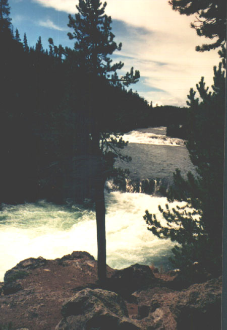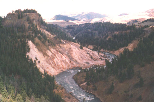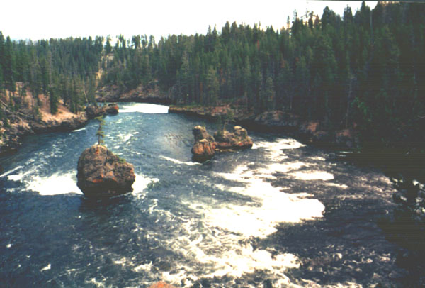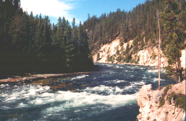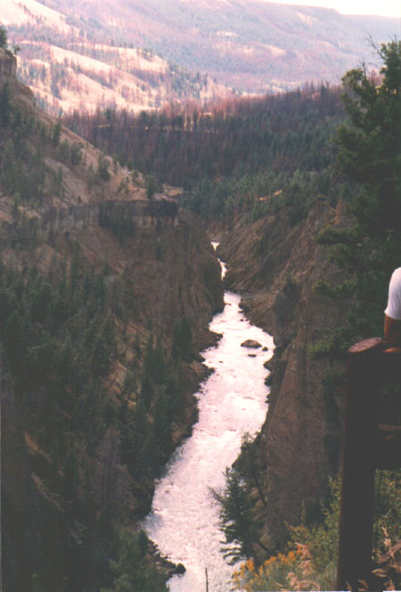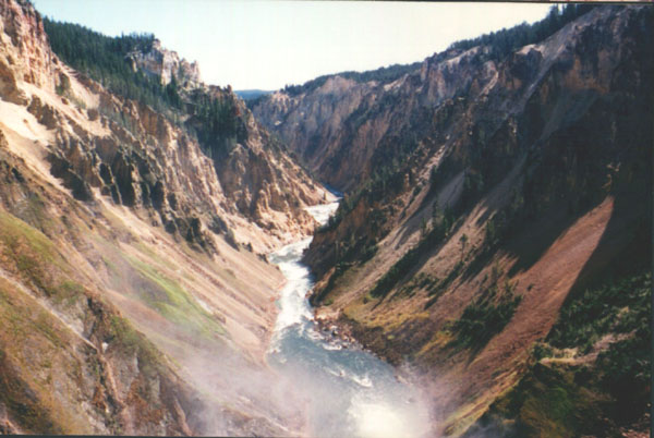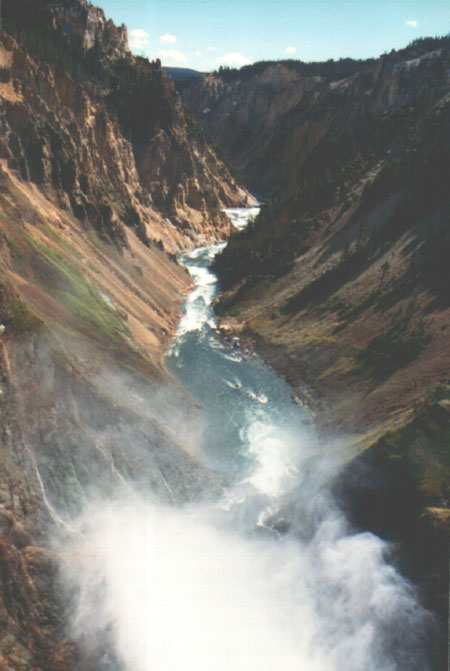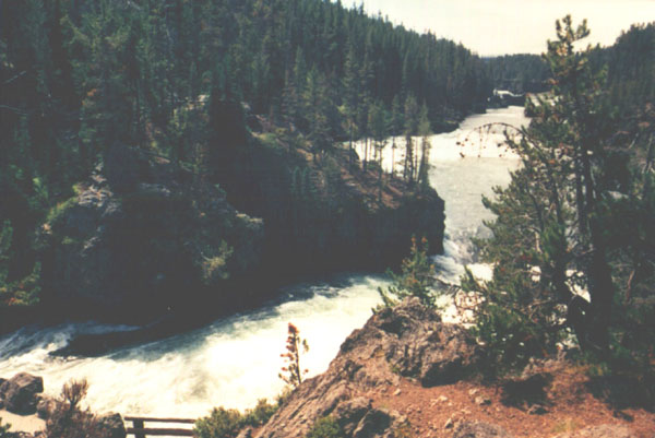 A view down the canyon, from just above the falls. The Yellowstone