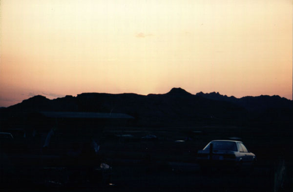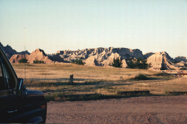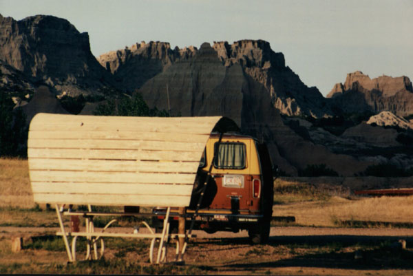 tourists) roughing it in their campground at the Badlands. These intrepid