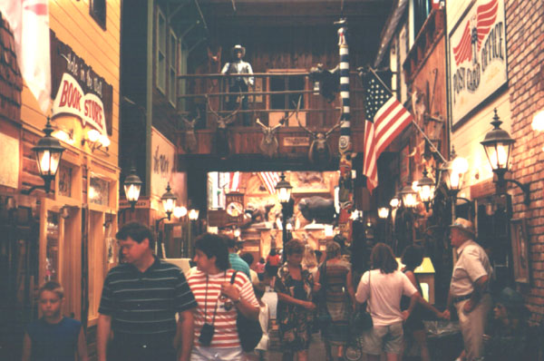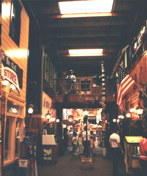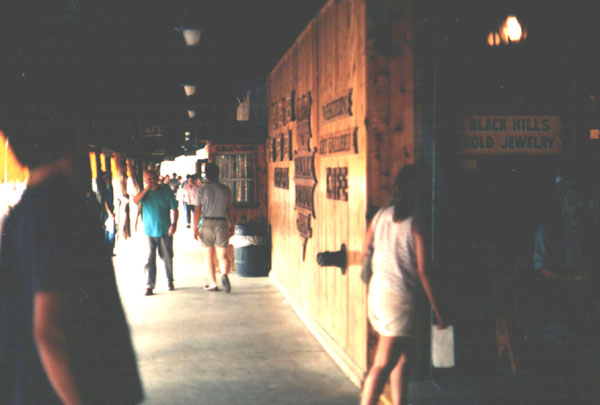 A long shot, down main street, Wall Drugs. From just inside the entrance. The place kind of looks like a mini mall. Well ordered chaos, and a clash of colors and textures. |