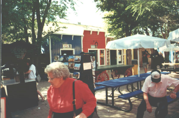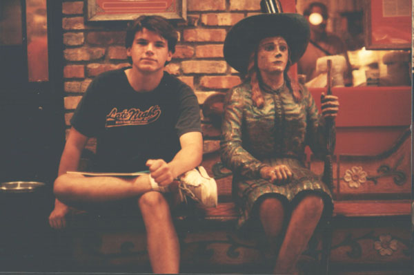 A cowboy seems to watch us, from a balcony holding mounted trophies. This is certainly Americana. Note the prevalence of American flags. This was in the early nineties, the clinton years, when patriotism was not exactly at a high water mark. |