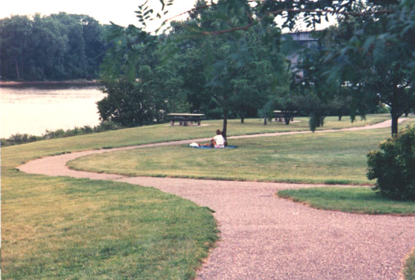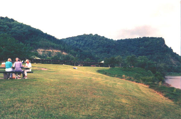 These people seem to be enjoying themselves, and why not? Pretty scenery, the banks of one of the world's great rivers, good company, and a little something to eat. What more could one want? |