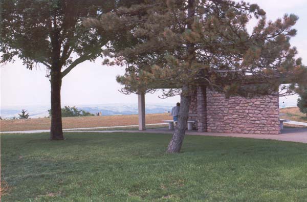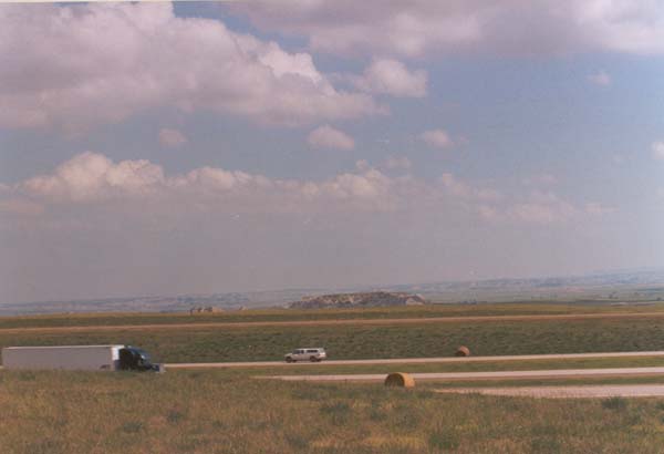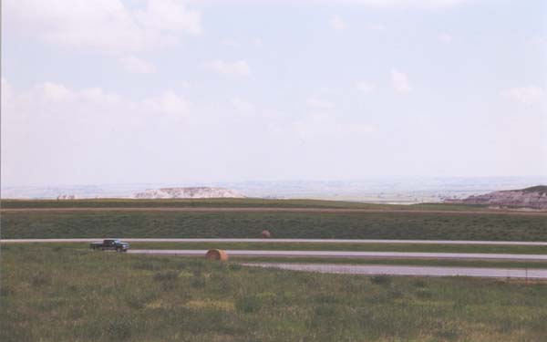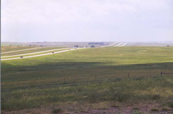 out of sight, perhaps thirty or forty miles down this road, lies South Dakota. |