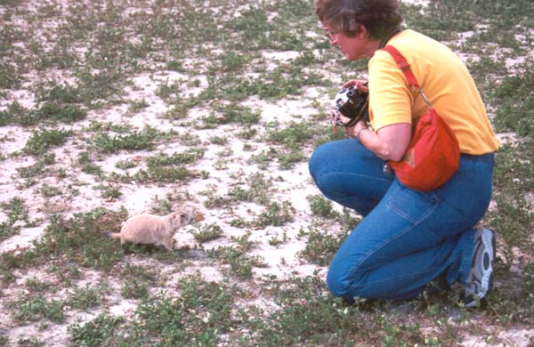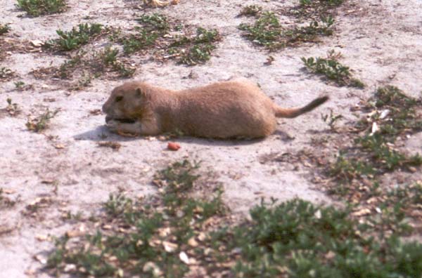 Our parting shot of the Badlands, for now. In a day we will return, after sampling the delights of Wall, and of Wall Drugs. By the time we are back, the badlands will be it's usual dry, hot self, and we will be pining for the cool of a refreshing rain. |