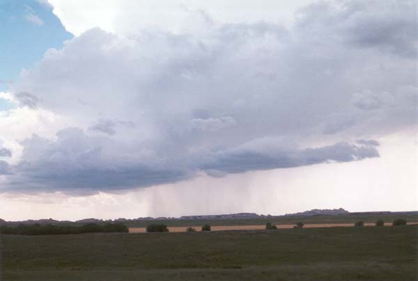 Rain over the Badlands. This is the first time I have ever seen it rain here. In general the rains are infrequent, and torrential. |