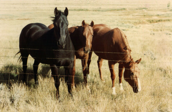 The black horse finally made up his mind about me and came over to join the others. He seems to have developed a bit of an itch. My friend, the distant brown, never did amble by. I suppose some horses can be just as unsociable as some people. |