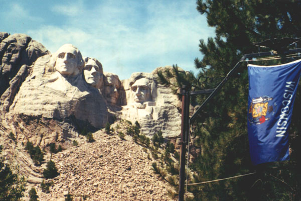 One more shot of mountains, trees, and a tremendous sculpture and national monument. |