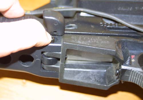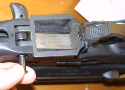A single pin, just ahead of the ejector port, is pushed out, and the lower