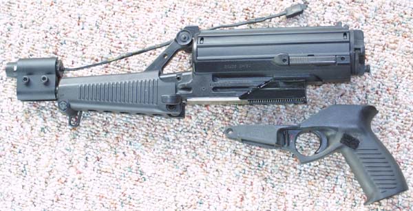 receivers separated. The bolt unit, with recoil springs, can be seen as