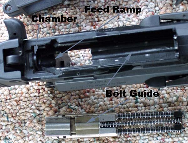spring and guide rod. The three piece bolt itself can not be seen in this