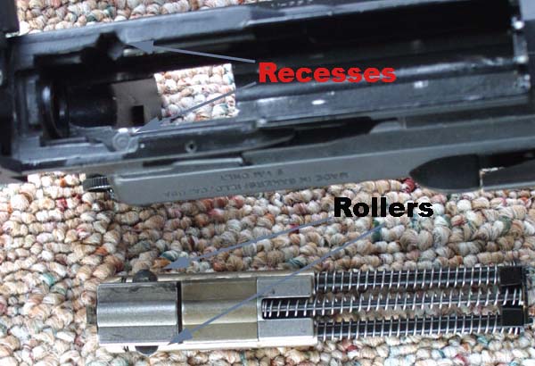 sides of the upper receiver, thus locking the bolt in place. The rollers are