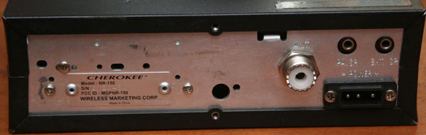 The Cherokee Nightrider The Cherokee Night Rider 150, is my first new mobile unit since my involvement in the CB craze of the 70s/80s. This is my third Cherokee radio product, and I am sorry that the company is no longer in business. They offered some great products, and didn't charge an arm and a leg for them. These radios were offered by Wireless Marketing Corp, and were well thought out, and of high quality. Parts of the Cherokee product line resemble the products of Cobra. This is no coincidence. Wireless Marketing Corp. of Illinois was started by former Cobra Electronics marketing and sales vice president Doug Marrison. His connections with Cobra marketing allowed him access to the same suppliers and manufactures which made the Cobra radios, and supplied so many other American retailers. The company offered a few ham radio products; but mostly involved itself in the CB market. They sold base units, mobiles, and handhelds. The Nightrider 150 is a