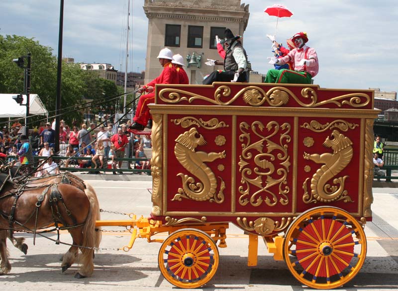 Carriage carrying Great Circus Parade Clown
