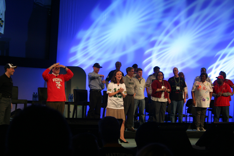 Mary Dillon, CEO, leads us in prayer, while Steven Campbell raises his hands to the Sun. |