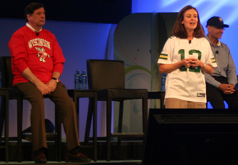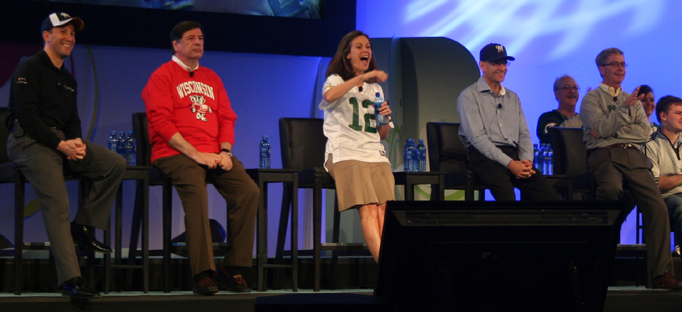 Mary Dillon makes a face at us, before we leave. |