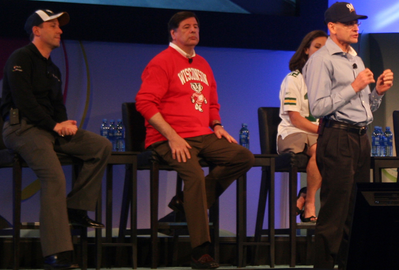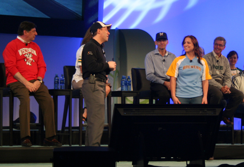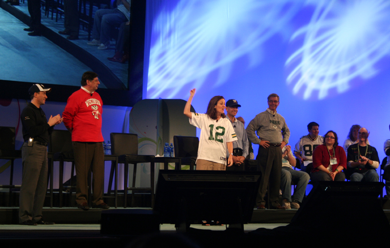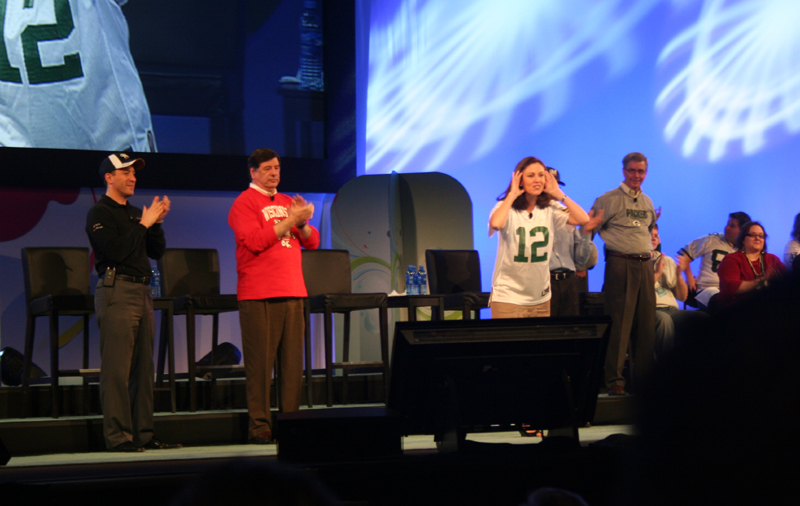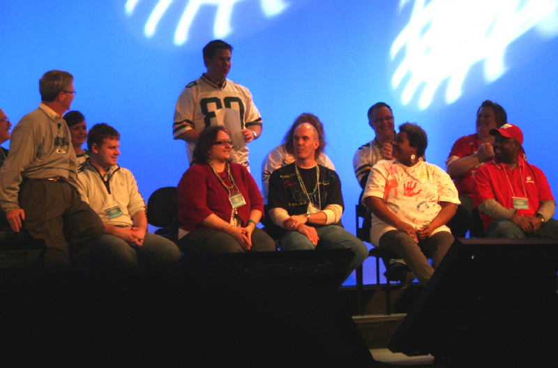 Alan Ferber, Operations, tells us, "I have some good news and some bad news." The good news was that he was happy to see us all. The bad news was that his hands were also stuck together. |