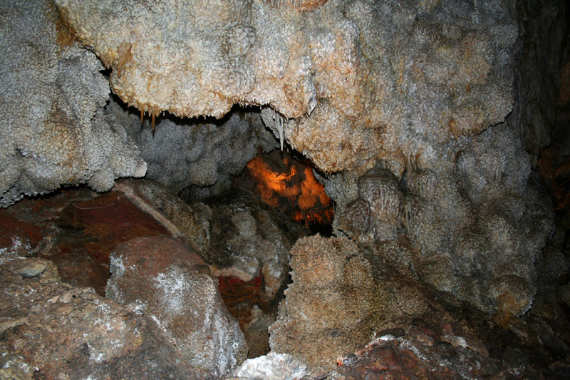 A look into one of the countless crevasses' lining the main passages of the cave system. All lead off to who knows where, and insure that it will be many years before the cave is completely explored. |
