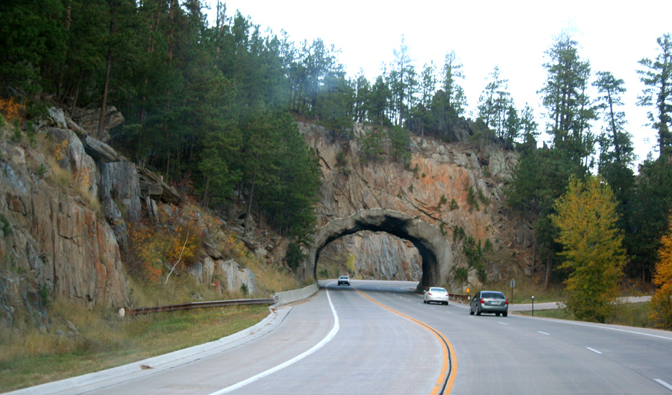 Left: Every possible thing having to do with Mount Rushmore can be found here. Below: Through the tunnel, and then back out into The Black Hills. |