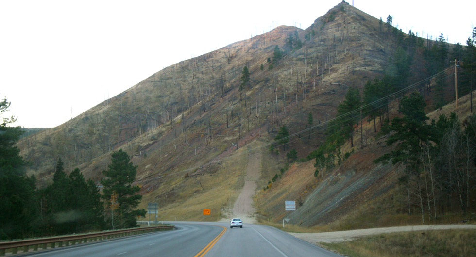 Heading down some fairly steep grades, back towards the town of Keystone. |