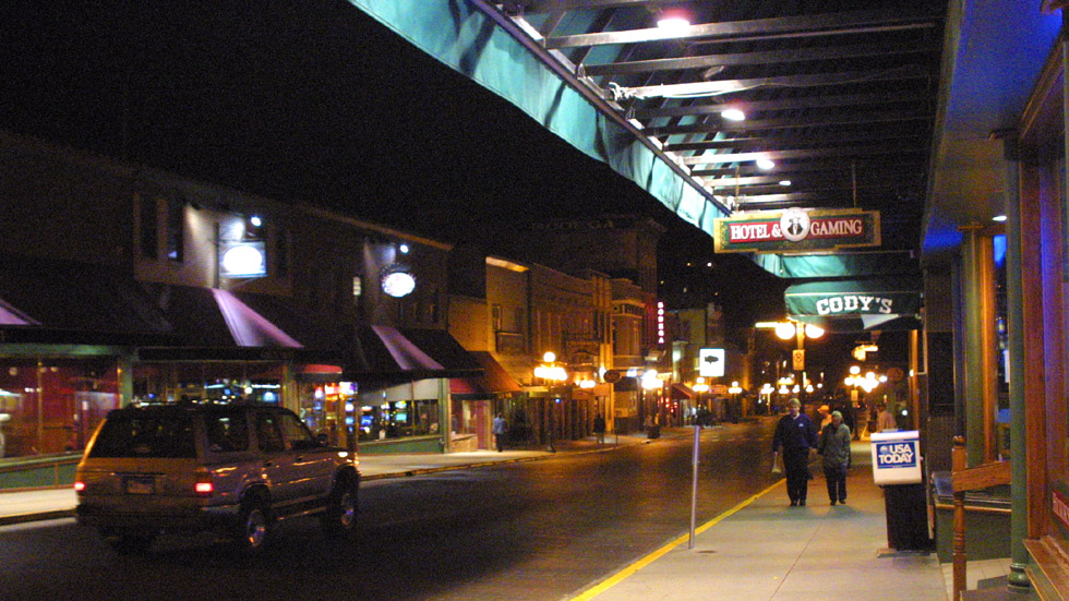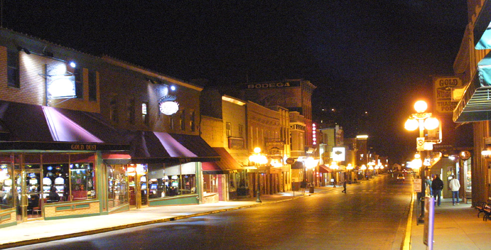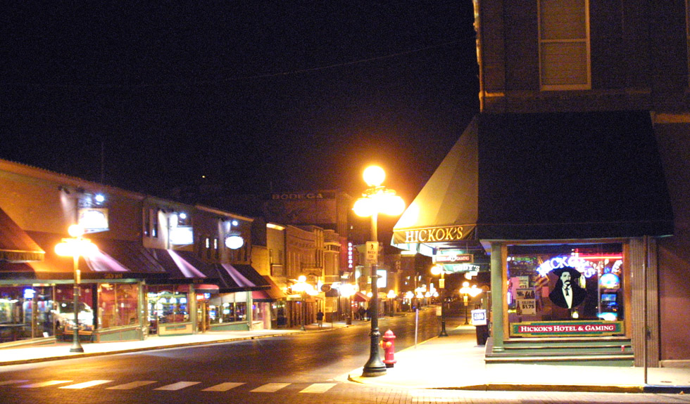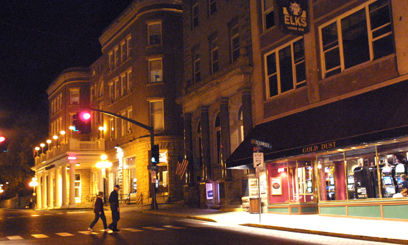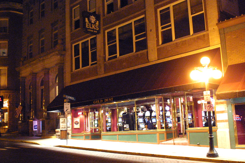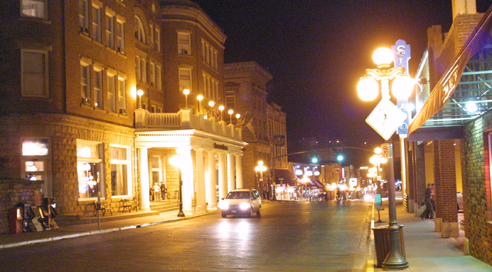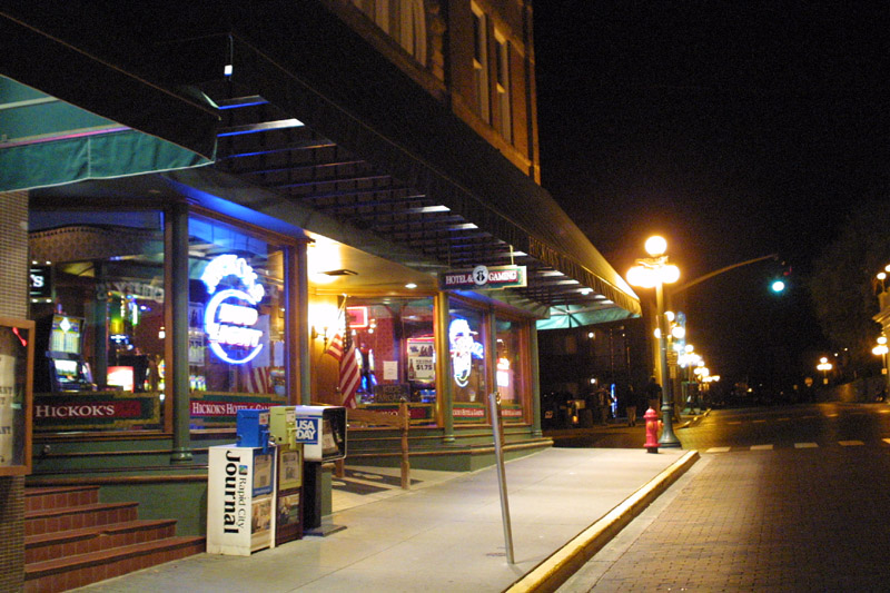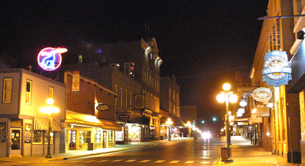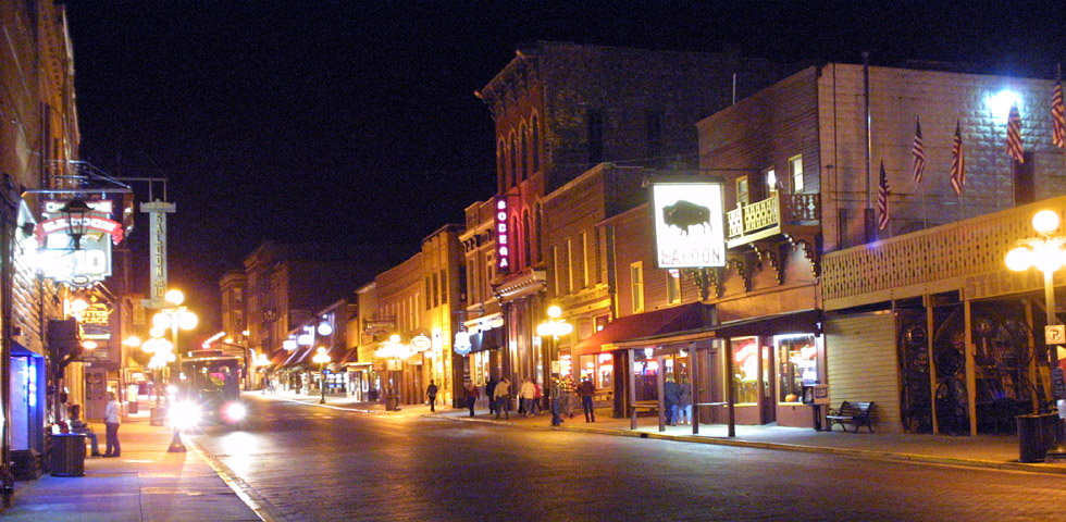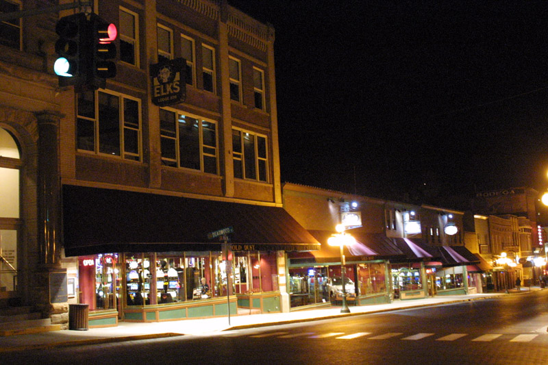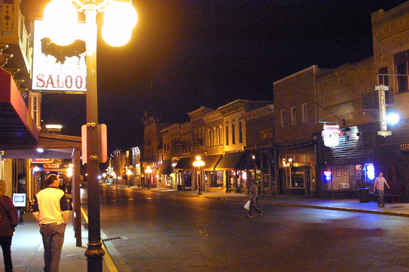 My first real view of the main drag of Deadwood, was at night. This is not a bad way to see the place, as it seems to come into its own during the hours of darkness. |