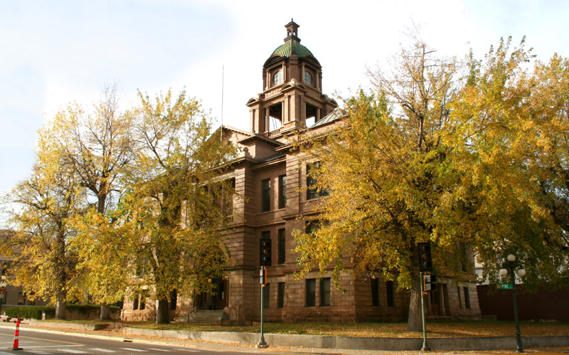 Left: The courthouse Below: A look up one of the main streets, and at the neighborhoods climbing up the sides of the surrounding hills. |