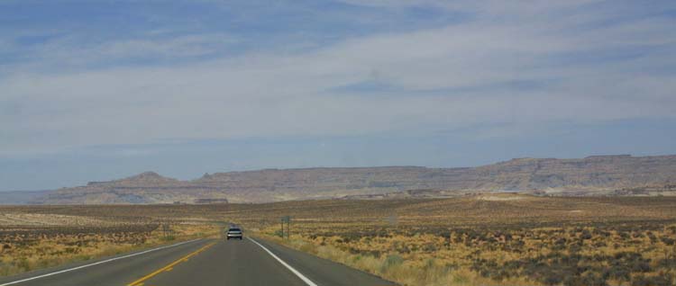 | Off in the distance we are looking out across the Painted Desert in Utah. This is true desert, though it seems little different from the area we have been in since entering Arizona. | |