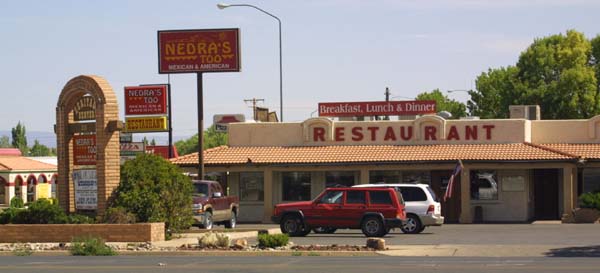 | Nedra's Restaurant. I recommend this place, if you are ever in the area. The food was great, and not really very expensive. There is a list of famous people who have eaten here, including actors on location shots. Nedra's has it's own web site. | |