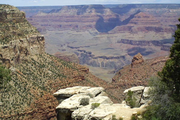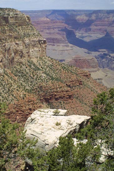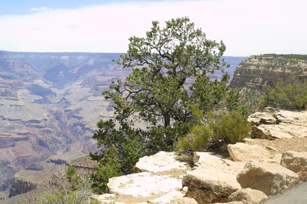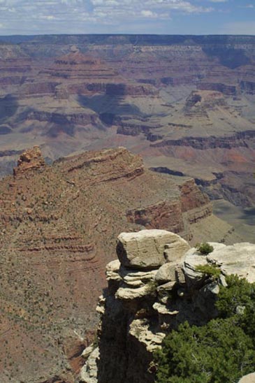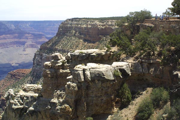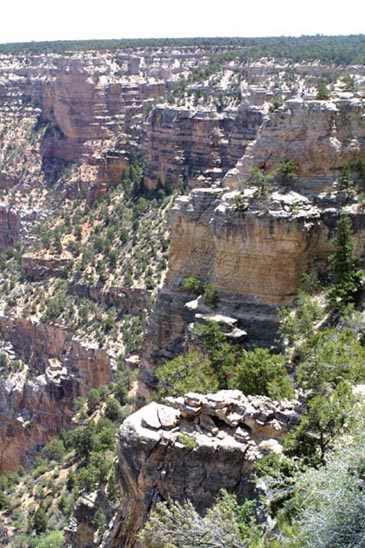 A cliff in the foreground is part of the canyon rim. many equally