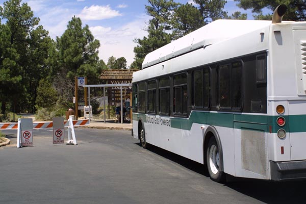 | LP powered busses do not pollute, and go all over the park (well, mostly). They are air conditioned, and the drivers are friendly, knowledgeable, and act as tour guides, of sorts, describing and explaining the terrain through which they take us. Car addict, and motor enthusiast that I am, I never drove throughout my stay in the park. | |