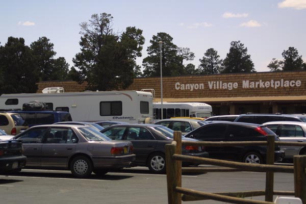 | Some people moan and complain about the development of the park, but I was very relieved to see it. Stores, inns, motels, lodges, parking, and restaurants were concentrated at a few strategic locations, the rest was left alone. I parked my car in this lot, and left it for four days, never needing it until it was time to go. Busses, and trails lead all over the rim of the park, and more trails lead to the bottom (just try getting a car down there). | |