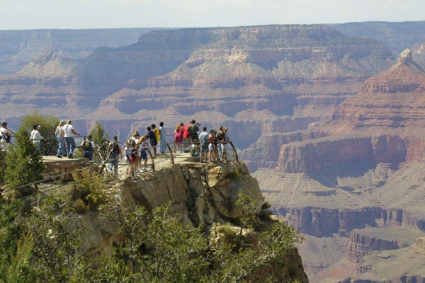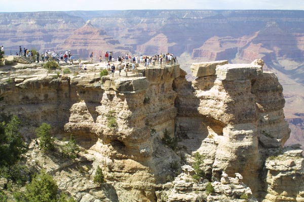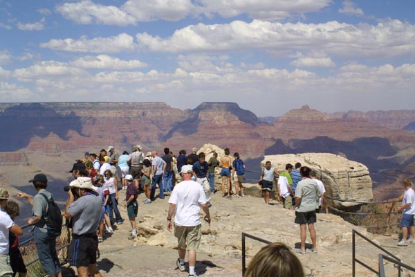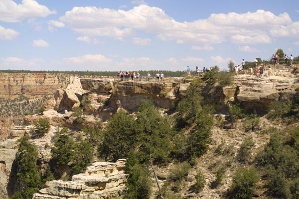Another group, gathered at the edge. The rim walk leads from one scenic
