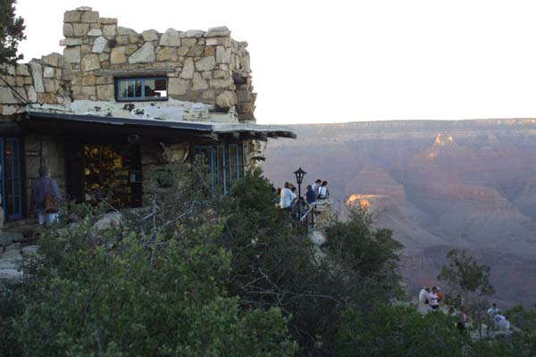 The moon rises over the top of the canyon's finest hotel. |