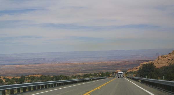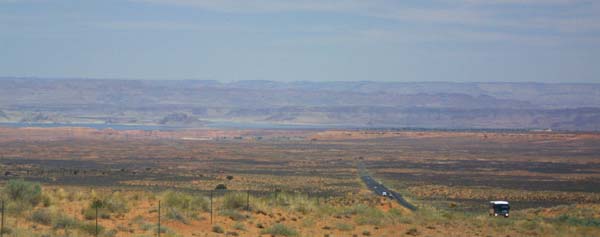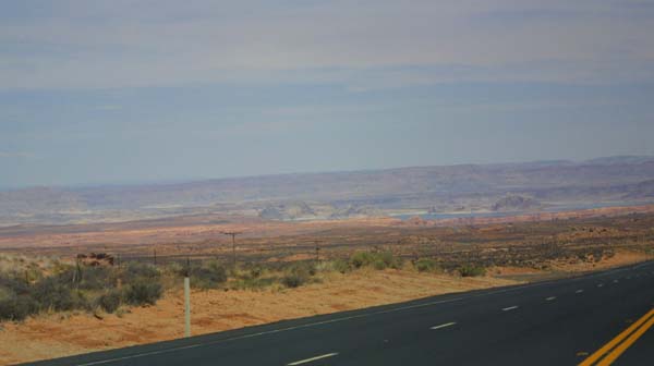 A faint glimpse of Lake Powell, the first bit of open water we have