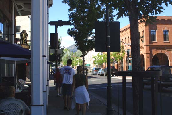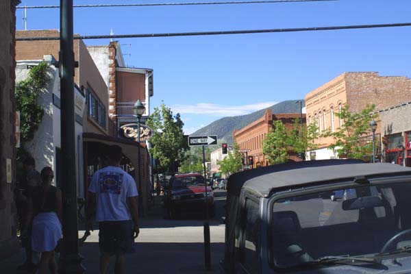 | Stereotypical main street of a busy mountain town. | |