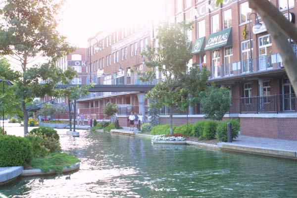 A glance at the downtown area, from the edge of the canal.