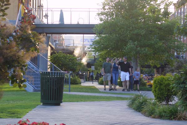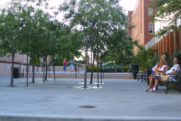 A plaza makes a good place to sit, rest, and watch the water.