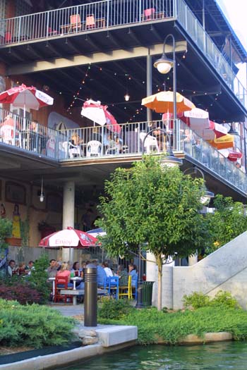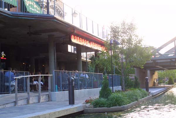 My first views of the canals of Oklahoma City. I had not known that such a thing existed. Above, is a view from street level. To the left is a view of the main landing/entrance, to the canal barges.