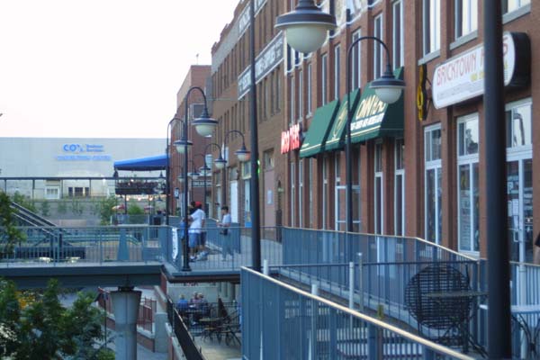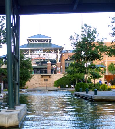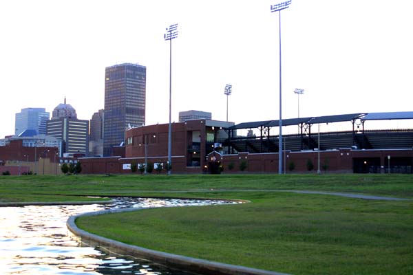 Looking up towards street level, we see Bricktown Stadium, where Oklahoma City's minor league ball team plays.