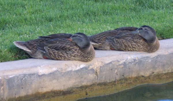 A couple of ducks get ready for night fall.
