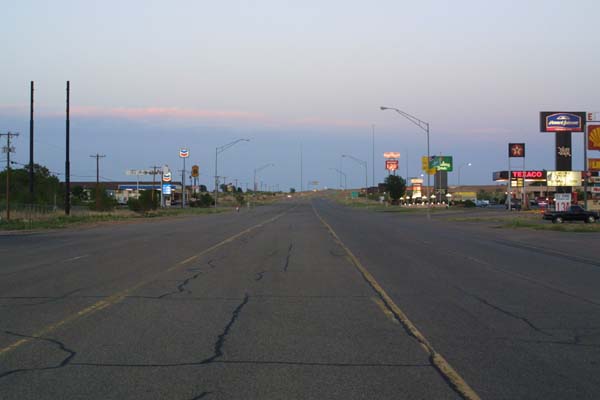 A look down old 66 at dusk. This becomes the main drag of Tucumcari