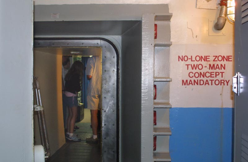 the doorway to the rectangular, steel inner capsule, which houses the missile