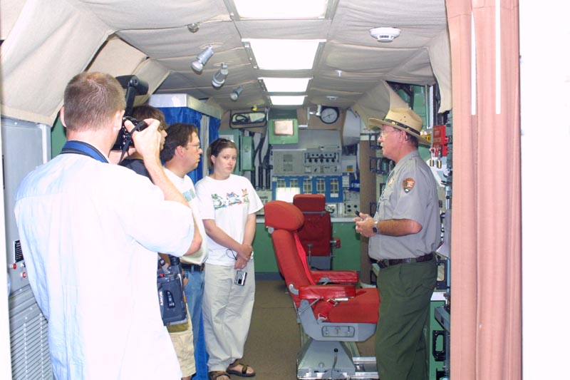 of the outer casing. Instead, it rests on a 12 by 32 foot steel platform,