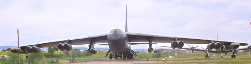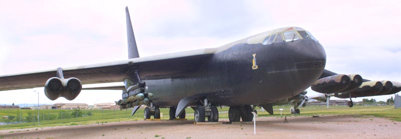 | A retired B-52 on display seems ready to take off