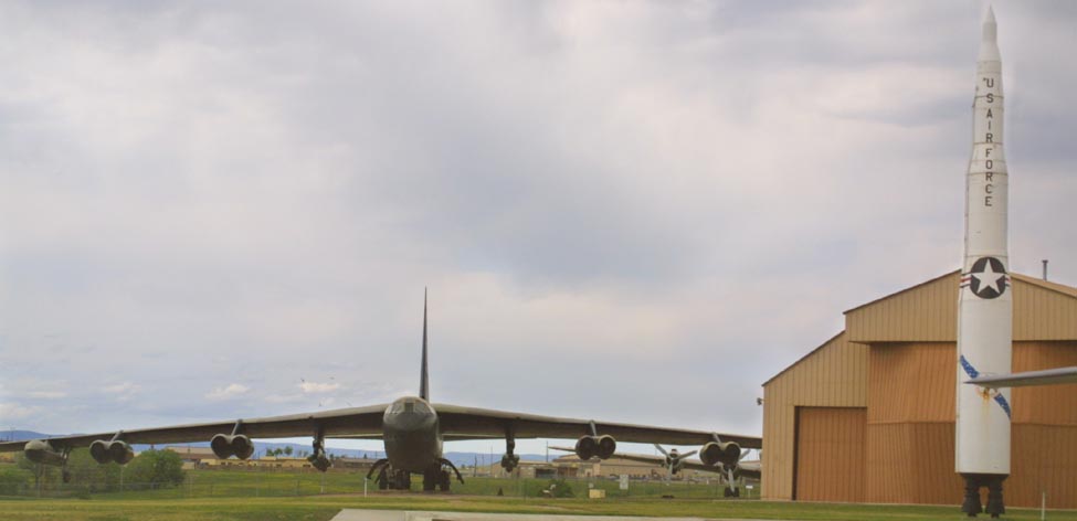 | Above: The B-52, bomber, and the Minuteman ICBM. For three decades, these were the land based components of our nuclear deterrent. Left: The B-52 bomber. |
